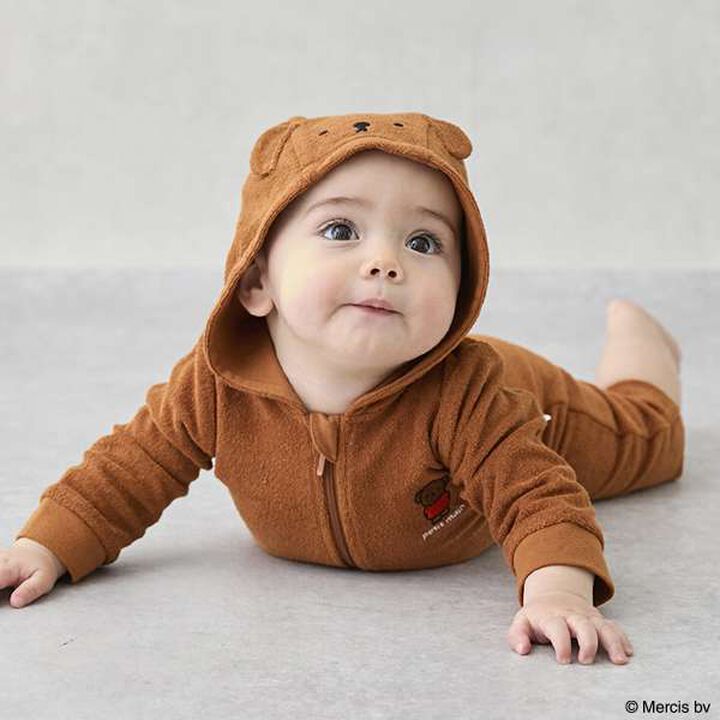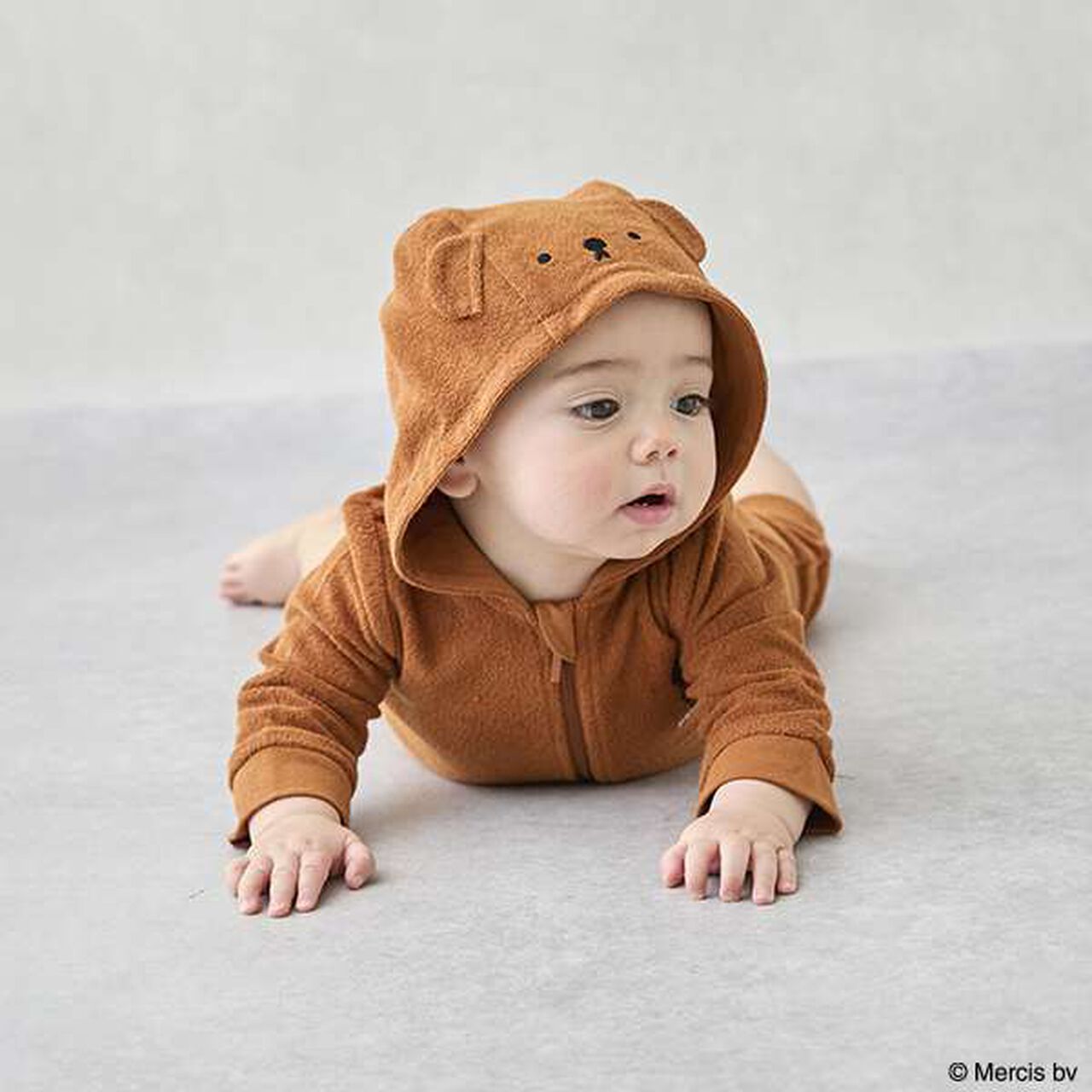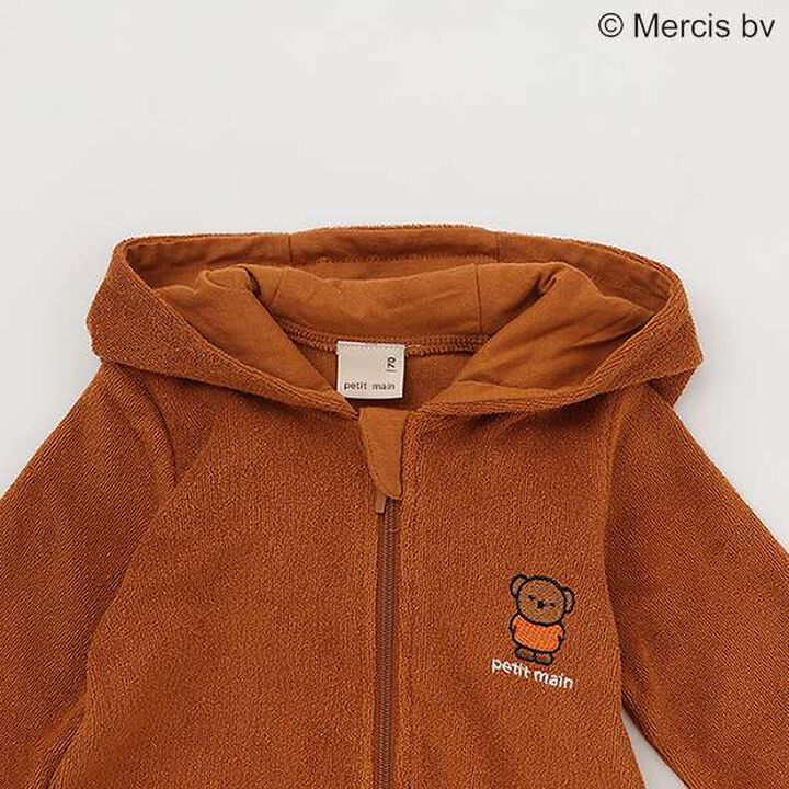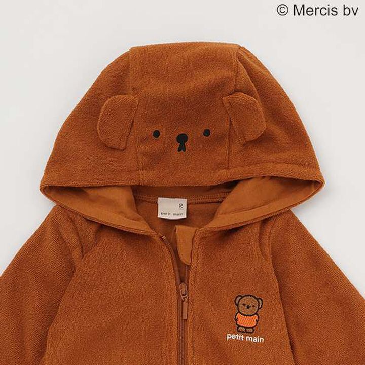 The charming item showcases embroidery on the chest and a face design on the hood.