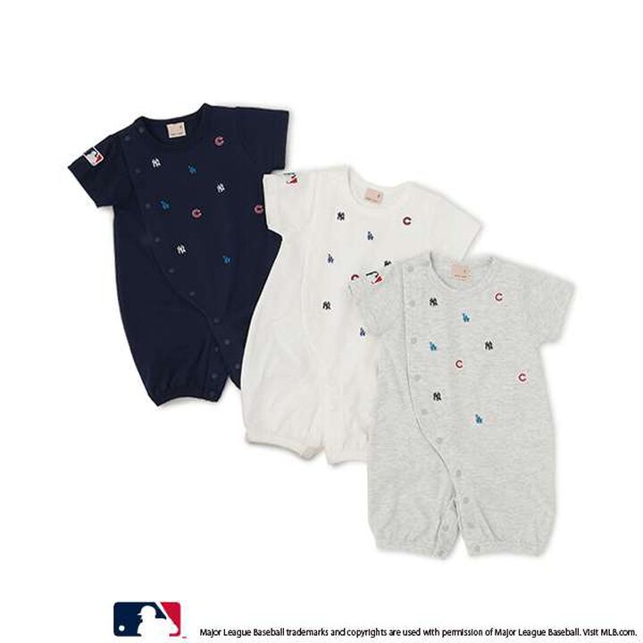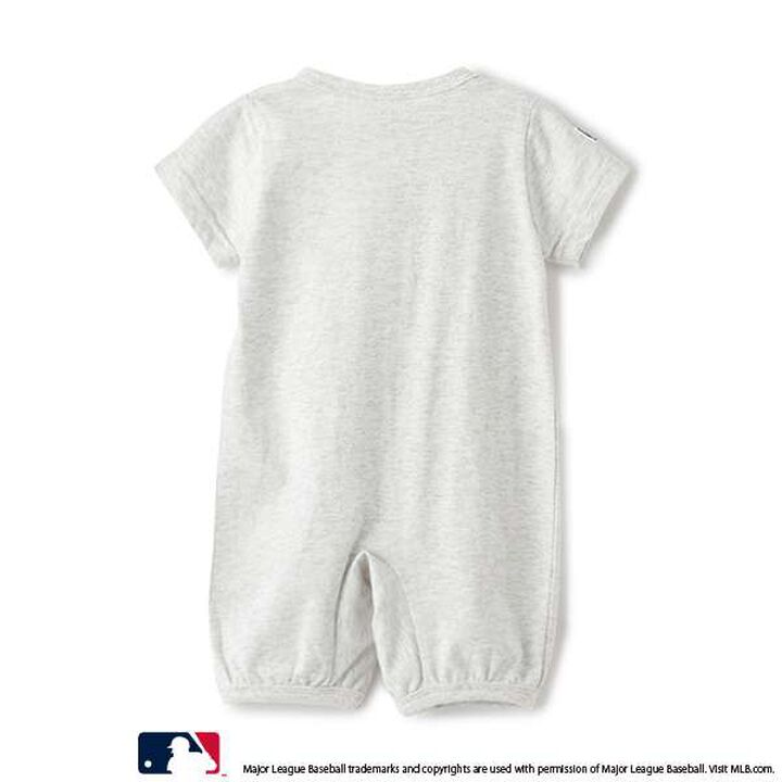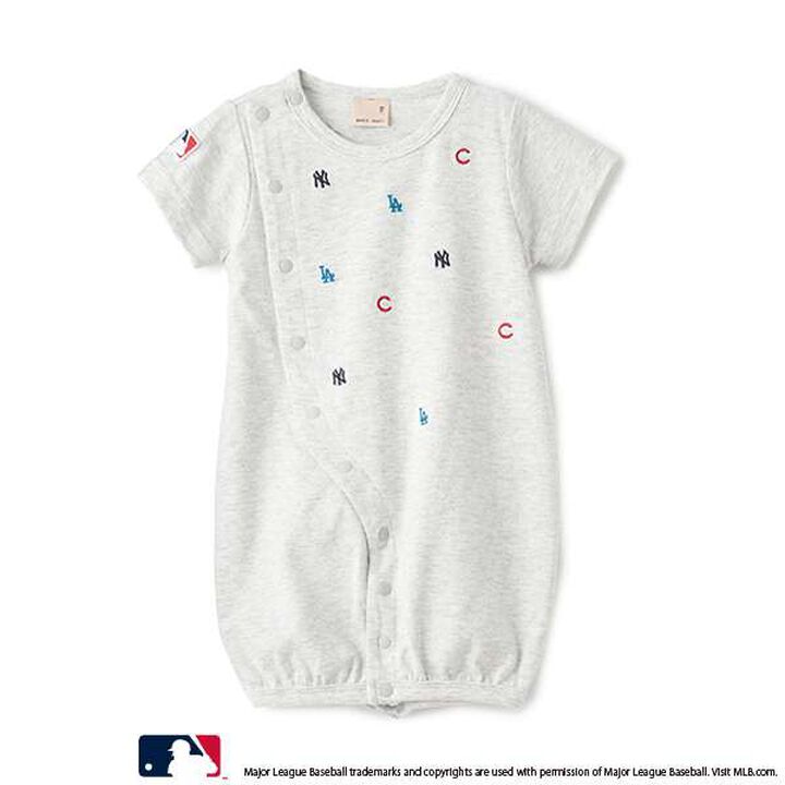 This 2 WAY all-in-one features an all-over pattern of logos from MLB teams. With snap buttons at the front and crotch, changing clothes and diapers is a breeze. The crotch area can be styled in two different ways depending on how the buttons are fastened.