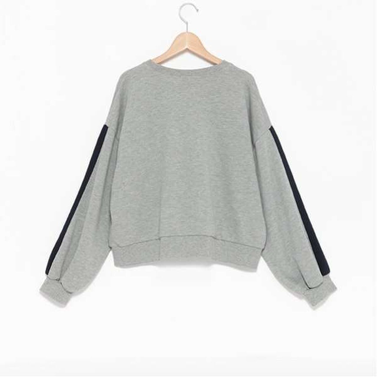 The sleeves feature stripes, adding a stylish accent while keeping it simple.
