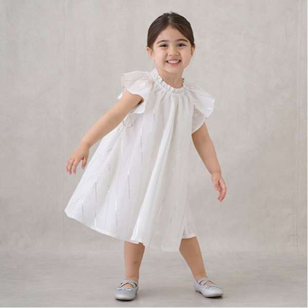 This sleeveless one-piece dress features a frill design at the shoulders and neckline that enhances its girly charm.